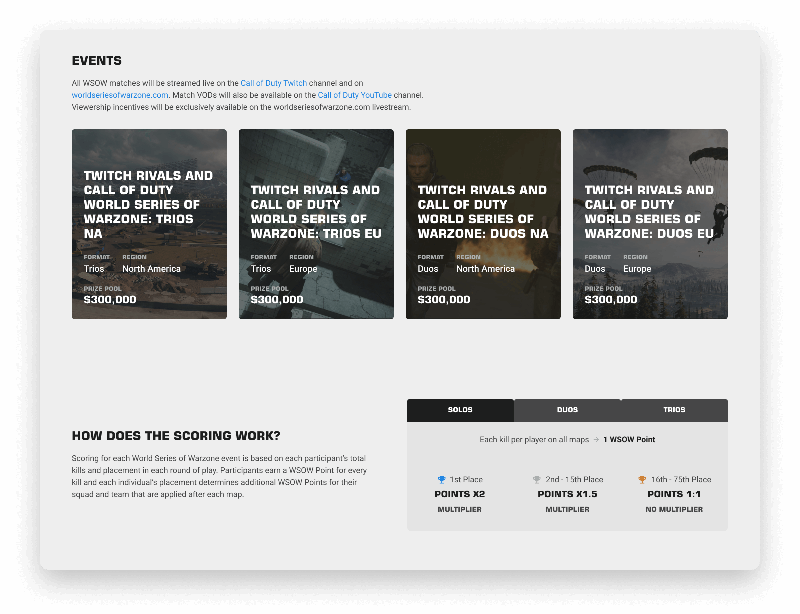 Twitch Rivals and Call of Duty World Series of Warzone is our newest in a long line of projects with Activision Blizzard. As you can guess, we cooked up a new collaboration with Activision’s Call of Duty (CoD). Our main goal was to promote season 5 of Call of Duty: Warzone, a game with over 100 million players worldwide.